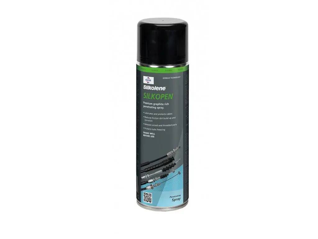 SILKOLENE SILKOPEN je grafitový penetrační sprej, který pomáhá uvolňovat zadřené závity. SILKOLENE SILKOPEN obsahuje suspenzi velmi jemného grafitu rozptýleného v lehké nosné kapalině. SILKOLENE SILKOPEN lze také použít k mazání a čištění lanek a bowdenů.